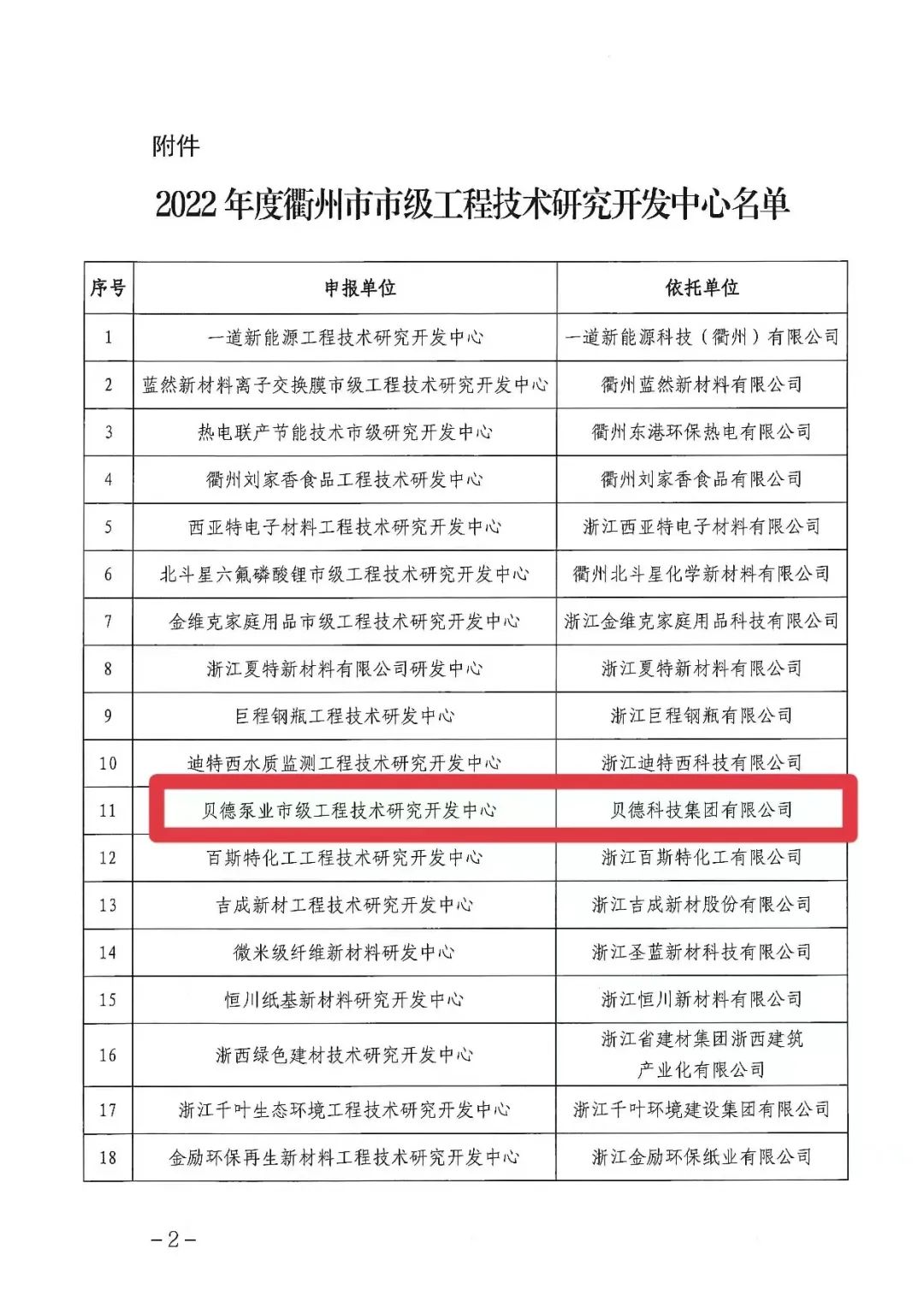 此次獲批市級工程技術(shù)研發(fā)開發(fā)中心,為貝德科技集團進一步科技創(chuàng)新、高質(zhì)量發(fā)展蓄勢注能,也為貝德泵業(yè)工程技術(shù)研發(fā)中心申請浙江省研發(fā)中心打下基石。
