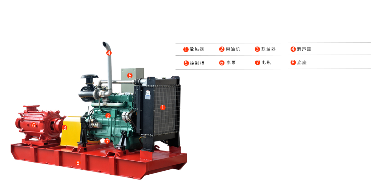 5.直連式:360kw以下柴油水泵機(jī)組采用國(guó)內(nèi)*的柴油機(jī)與水泵通過(guò)彈性聯(lián)軸節(jié)直接連接技術(shù),減少了故障點(diǎn),并使機(jī)組的起動(dòng)時(shí)間大大縮短,增加了機(jī)組的可靠性和應(yīng)急性能;